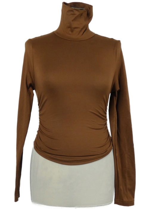 Nové - Dámske hnedé crop tričko s rolákom Shein