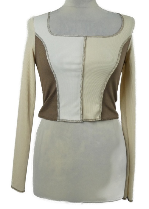 Dámske béžovo-hnedo-smotanové rebrované crop tričko Shein