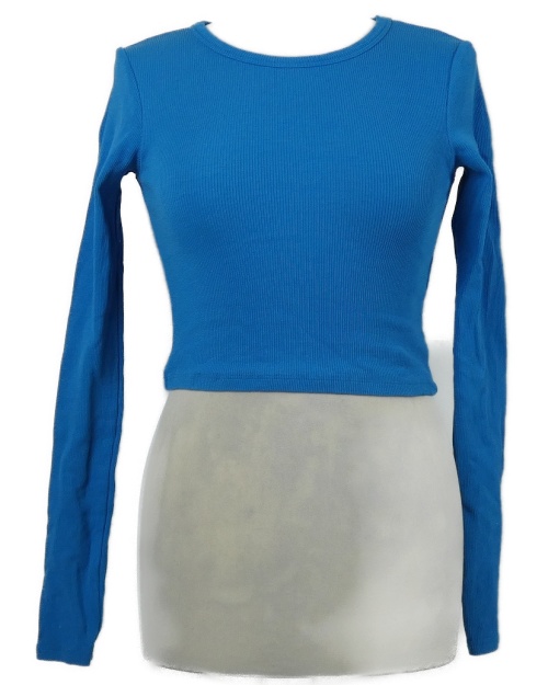 Dámske modré rebrované crop tričko JJXX