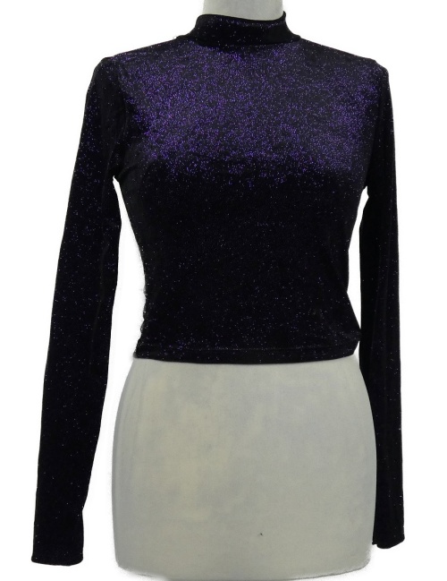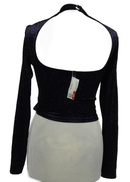 Nové - Dámske fialové trblietavé zamatové crop tričko s volnými zády H&M