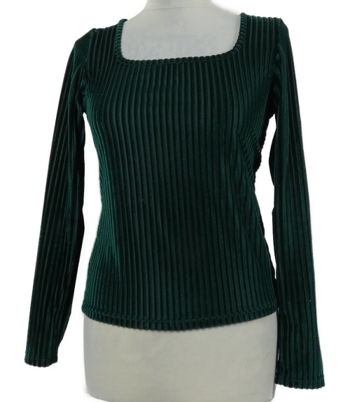 Dámske tmavozelené zamatové rebrované tričko Shein