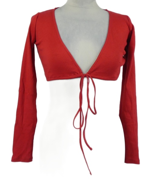 Nové - Dámské červené žebrované bolerko na zavazování Motel