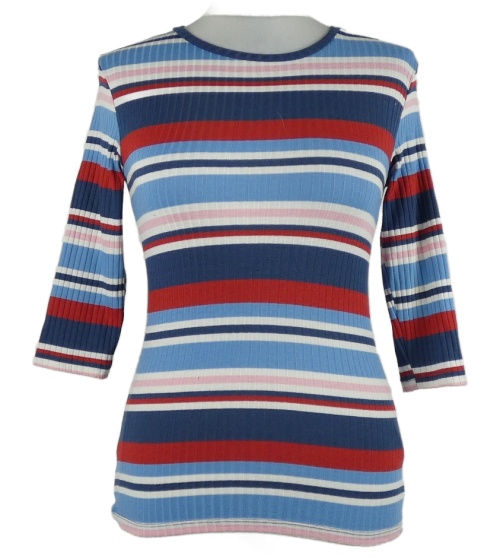 Dámske modro-červeno-ružové pruhované rebrované tričko C&A