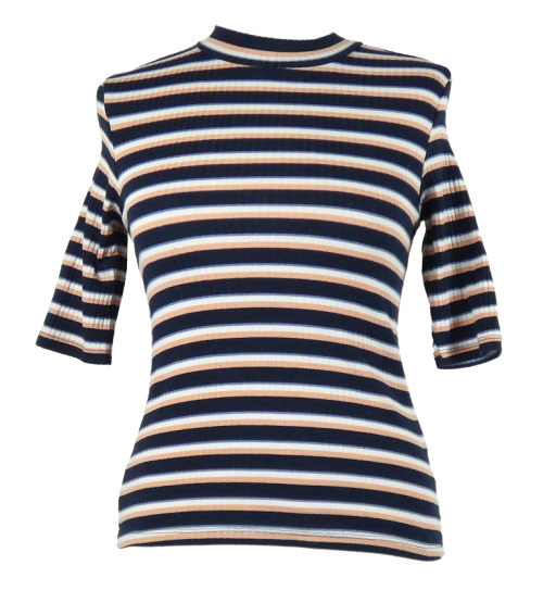 Dámske tmavomodro-ružovo-biele pruhované rebrované tričko Monki