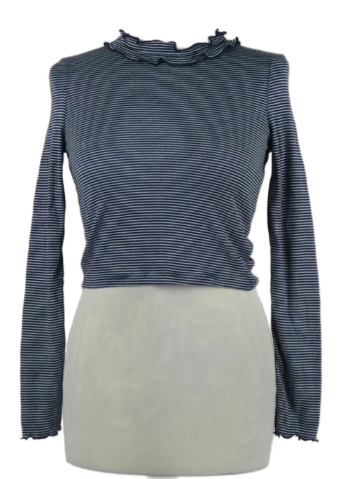 Dámske tmavomodro-biele pruhované crop tričko s golierikom River Island