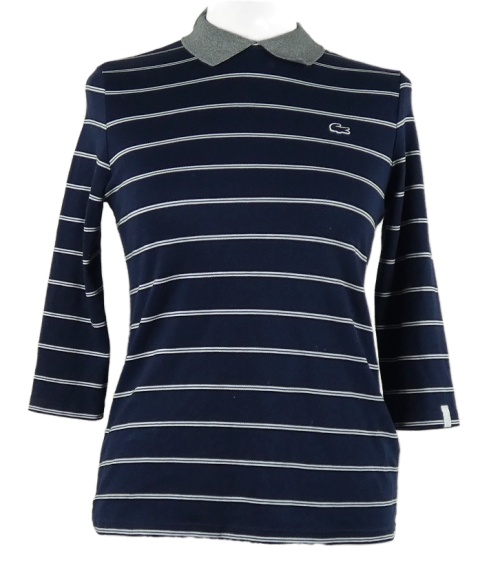 Dámske tmavomodré pruhované tričko s golierikom Lacoste