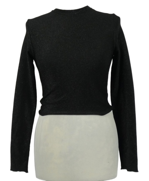 Dámske čierne trblietavé crop tričko