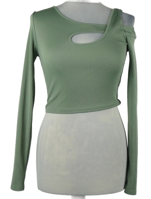 Dámske světlekhaki rebrované crop asymetrické tričko Topshop
