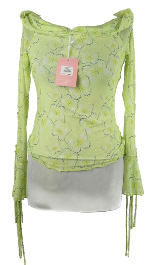 Dámske limetkové tylové tričko s motýlikmi a komínovým golierom