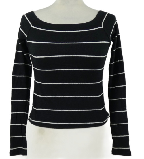 Dámske čierno-biele pruhované rebrované crop tričko s lodičkovým výstřihem H&M
