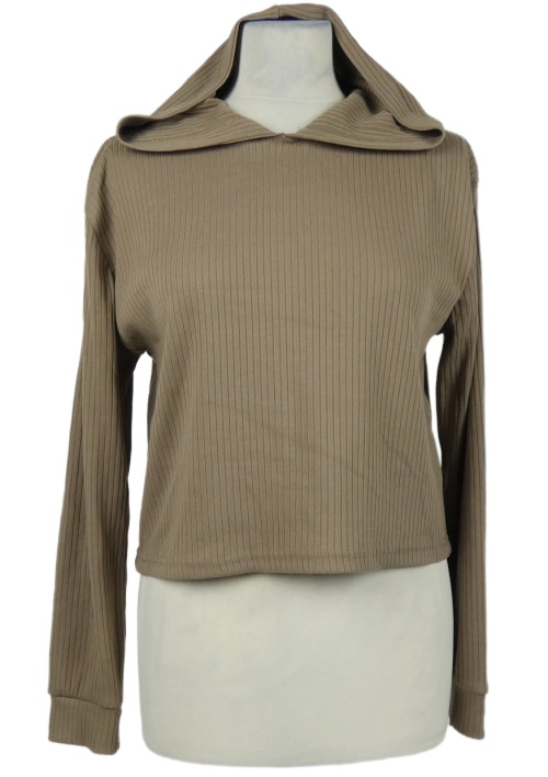 Dámske béžové rebrované crop tričko s kapucňou Primark