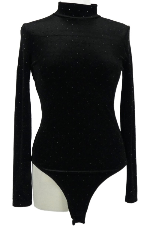 Dámske čierne zamatové body s cvokmi a stojačikom Primark