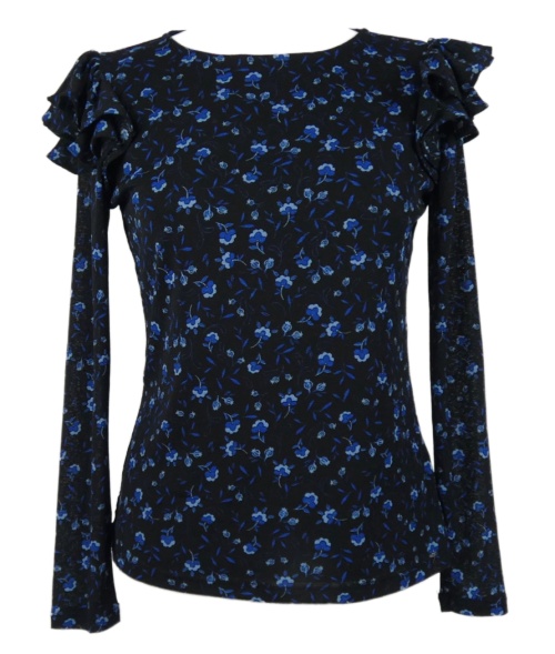 Dámske čierno-modré kvietkovane tričko s volánikmi Dorothy Perkins