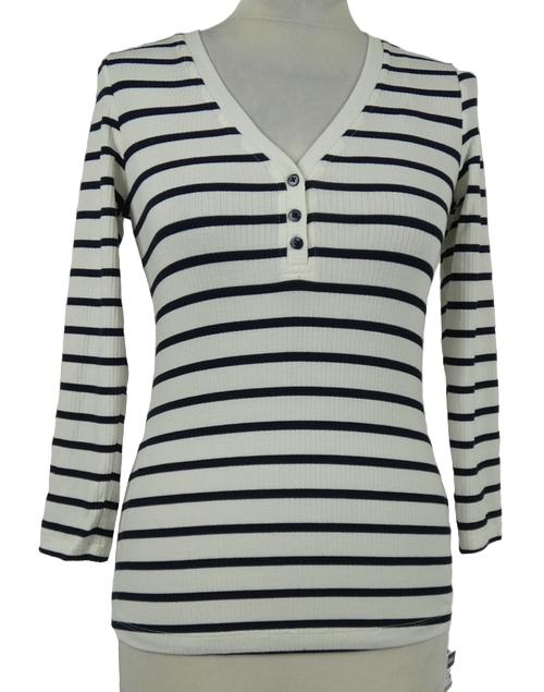 Nové - Dámske bielo-čierne pruhované rebrované tričko Dunnes