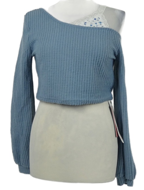 Dámske svetlomodré crop úpletové tričko s krajkovým ramínkem Romwe
