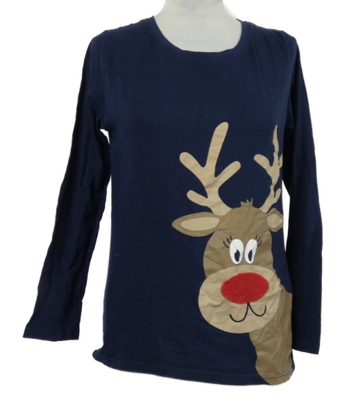Dámske tmavomodré vianočné tričko so sobom Blue Motion