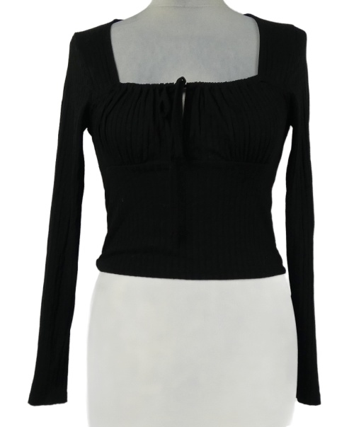 Dámske čierne rebrované crop tričko s hranatým výstřihem Asos