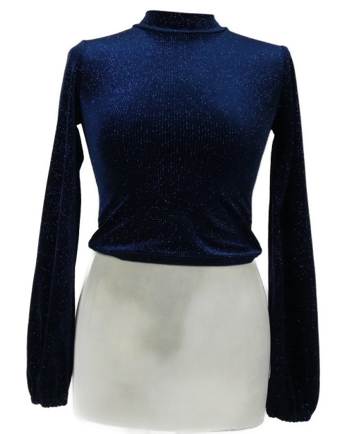 Dámske tmavomodro-strieborné zamatové crop tričko Tally Weijl
