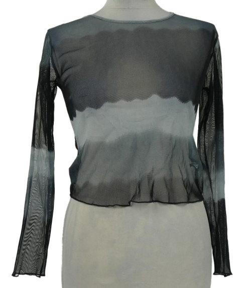 Dámske čierno-sivé pruhované sieťované crop tričko