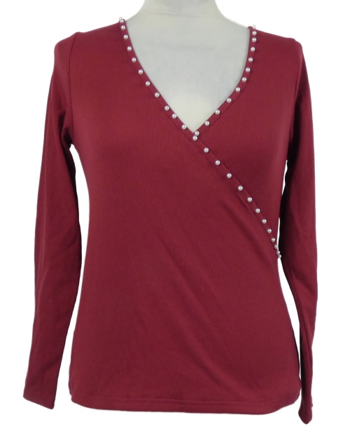 Dámske vínové rebrované tričko s perličkami