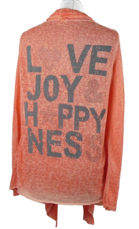 Dámsky korálový úpletový cardigán s nápisom