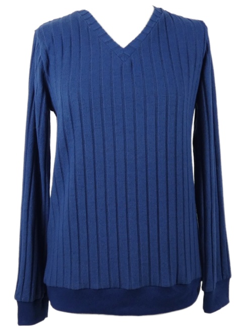 Dámske modré rebrované úpletové tričko