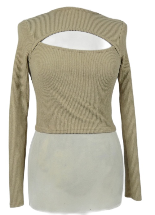 Dámske béžové rebrované crop tričko s prestrihom George