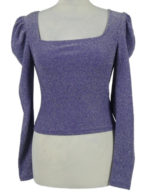 Dámske fialové trblietavé crop tričko s nabíranými rukávy H&M