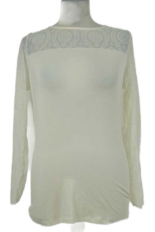 Dámske smotanové tričko s tylovymi vzorovanymi rukávy
