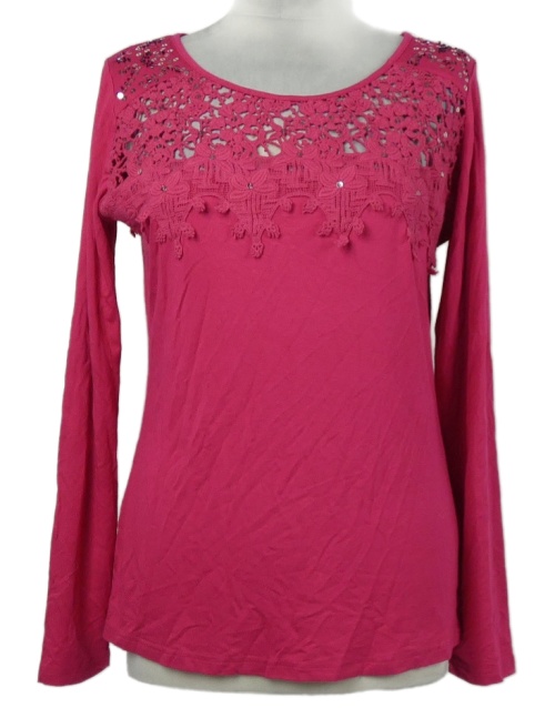 Dámske fuchsiové tričko s čipkou a flitrami Together