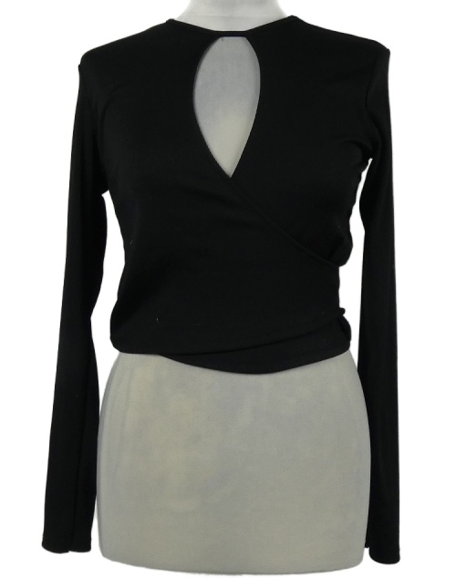 Dámske čierne rebrované tričko s prestrihom Bershka