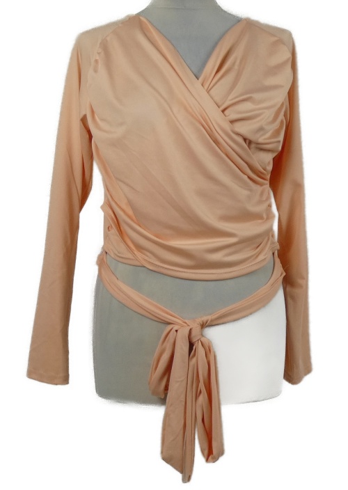 Dámska broskvová překřížená crop blúzka so zavazováním