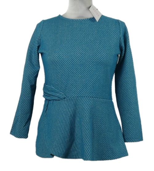 Nové - Dámske tyrkysové trblietavé prúžkované peplum tričko Savida