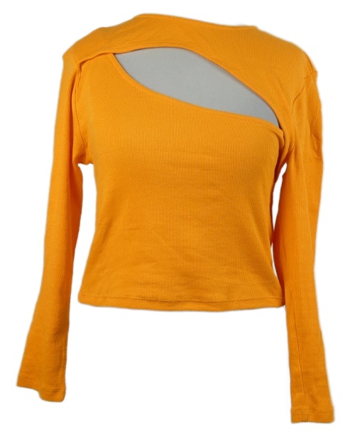 Dámske oranžové rebrované crop tričko s prestrihom Only