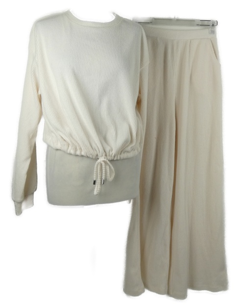 2set - Dámske smotanové rebrované úpletové tričko so stahováním + palazzo nohavice Jeff&Co