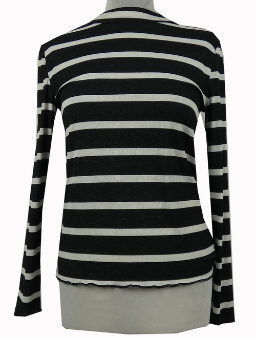 Dámske čierno-biele pruhované tričko so stojačikom