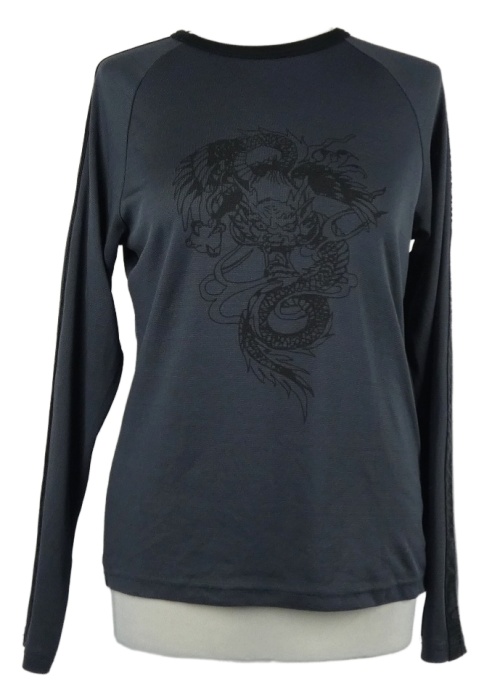 Dámske tmavosivé tričko s drakom a pruhmi Much More