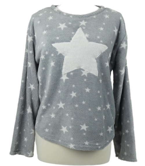 Dámske sivé hviezdičkované plyšové pyžamové tričko Janina