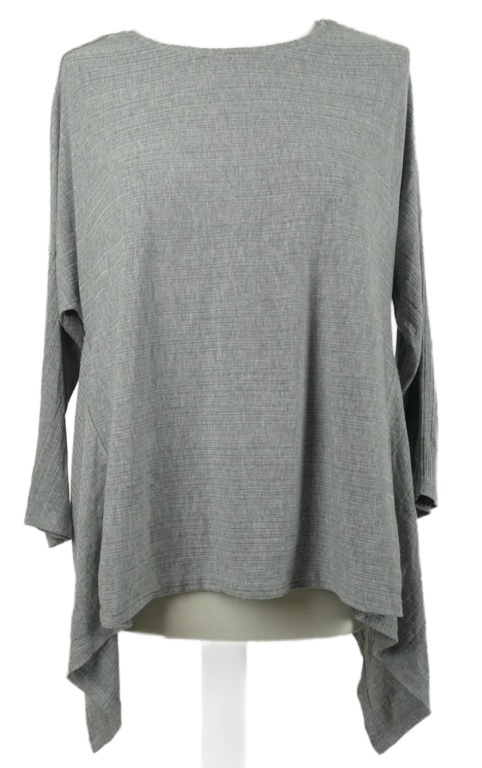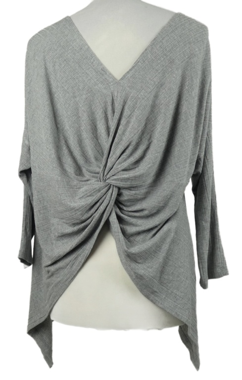 Dámske sivé rebrované voľné é tričko s cípy a řasením na zádech