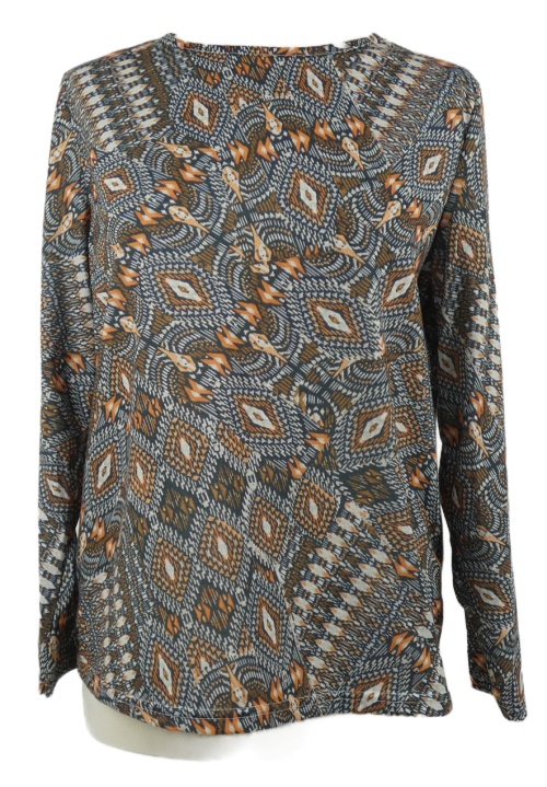 Dámske hnedo-oranžovo-modré vzorované tričko