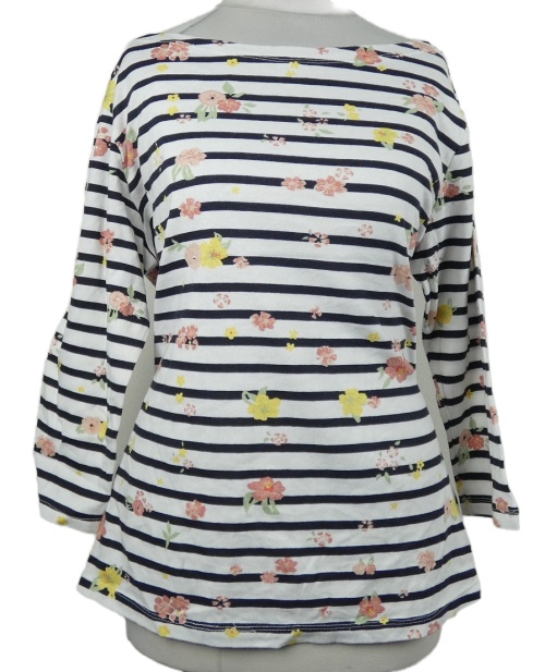 Dámske bielo-čierne pruhované tričko s kvetmi F&F