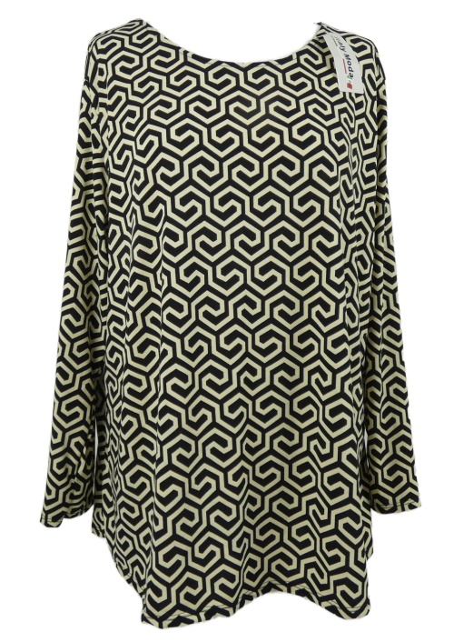 Nové - Dámske smetanovo-čierne vzorované voľné é tričko