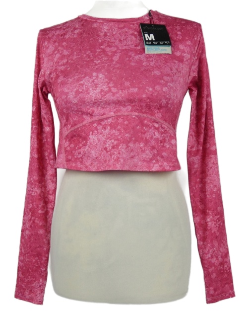 Nové - Dámske tmavoružové vzorované športové crop tričko Workout