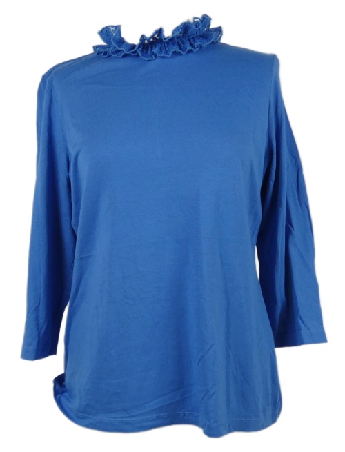 Dámske modré tričko s čipkovým golierikom Savida