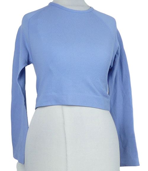 Dámske svetlomodré rebrované športové crop tričko Hiit