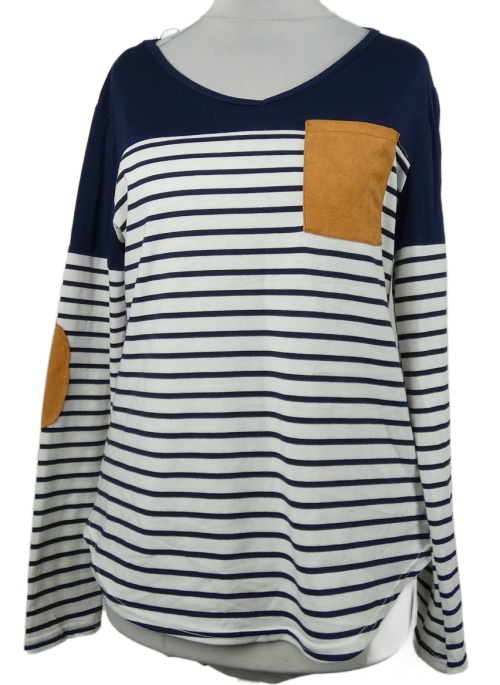 Dámske tmavomodro-biele pruhované tričko s vreckom