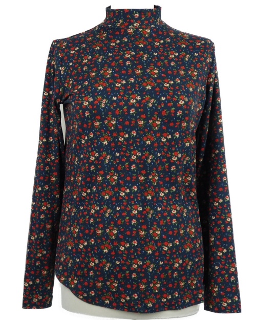 Dámske tmavomodro-červené kvietkovane tričko so stojačikom