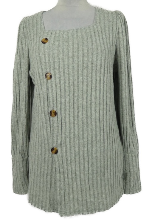 Dámske sivé prúžkované rebrované úpletové tričko s gombíky