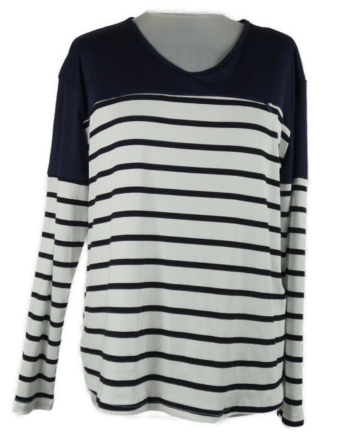 Dámske bielo-tmavomodro-čierne pruhované tričko Shein