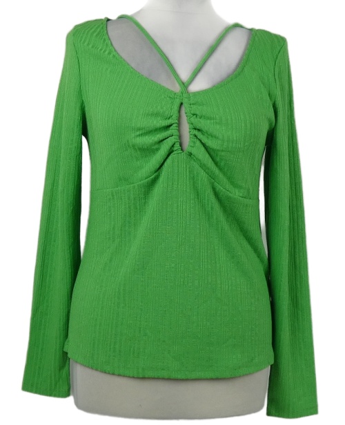 Dámske zelené rebrované tričko s překříženým výstřihem H&M